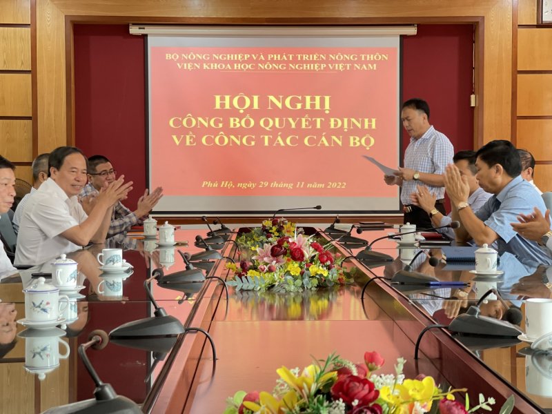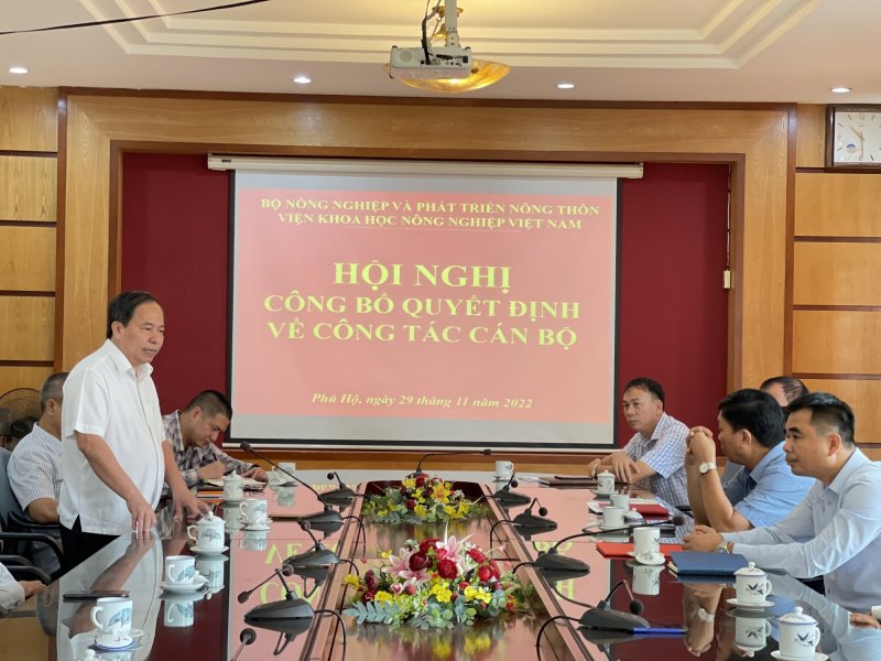 Đến dự và chỉ đạo Hội nghị công bố quyết định có GS.TS. Nguyễn Hồng Sơn - Giám đốc Viện Khoa học Nông nghiệp Việt Nam, TS. Bùi Quang Đãng - Trưởng Ban Khoa học và HTQT, ThS. Lê Trường Giang - Phó Trưởng Ban Tổ chức hành chính.